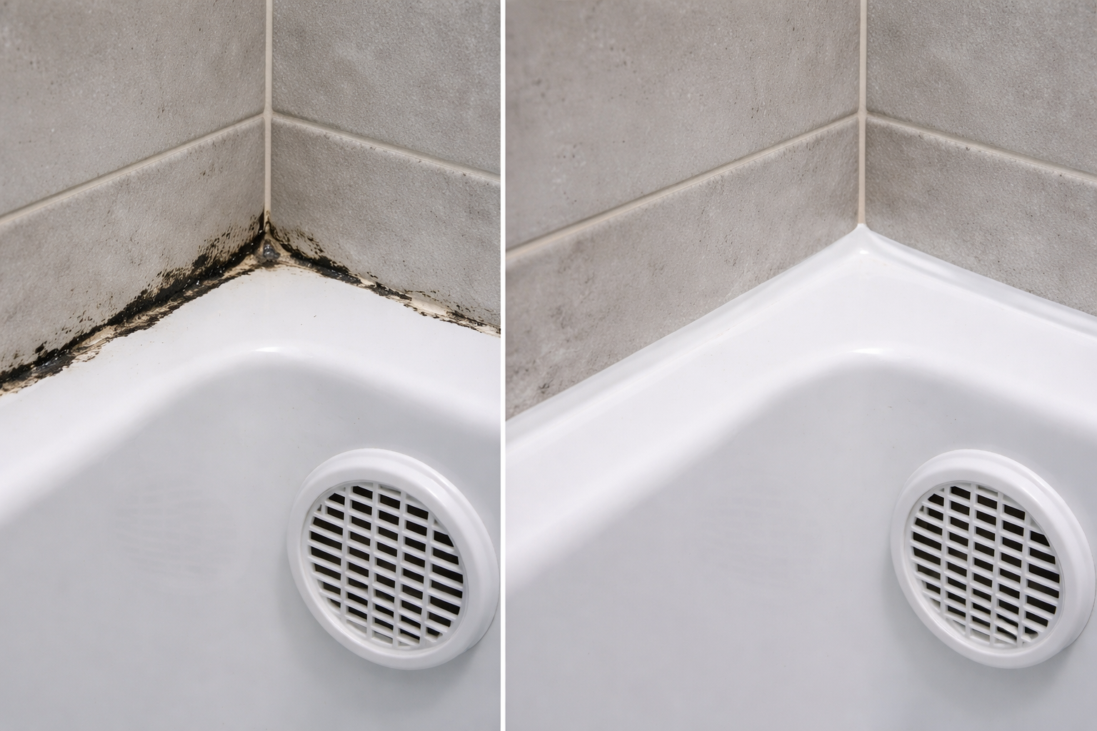 Vervang oude, zwartgeblakerde siliconenkit door een moderne kwaliteitssamenstelling met krachtige schimmelwerende middelen.