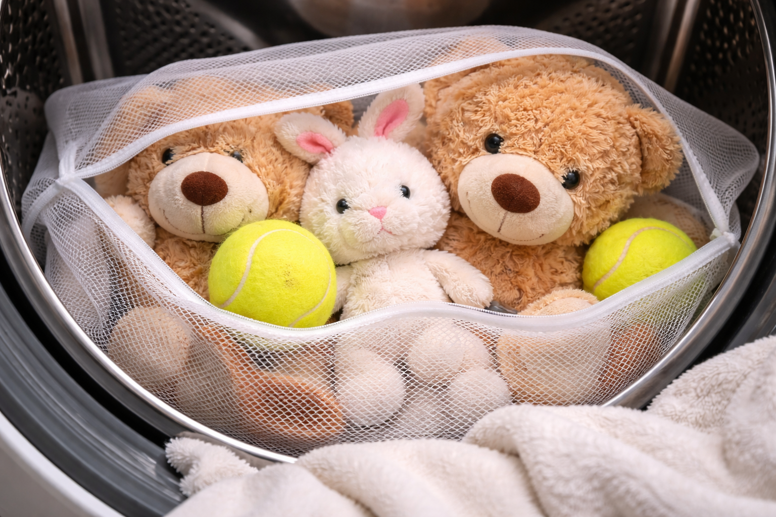 Geheime nuance: voordat je je zachte dieren naar de wasmachine stuurt, doe je ze in een dichte gaaszak en doe je een paar tennisballen in de trommel – dit voorkomt dat de syntepon gaat klitten en zijn vorm behoudt.