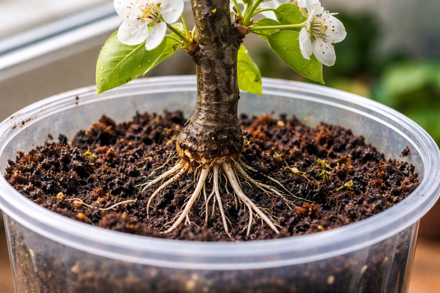 Behandel de onderkant met een groeistimulans van goede kwaliteit