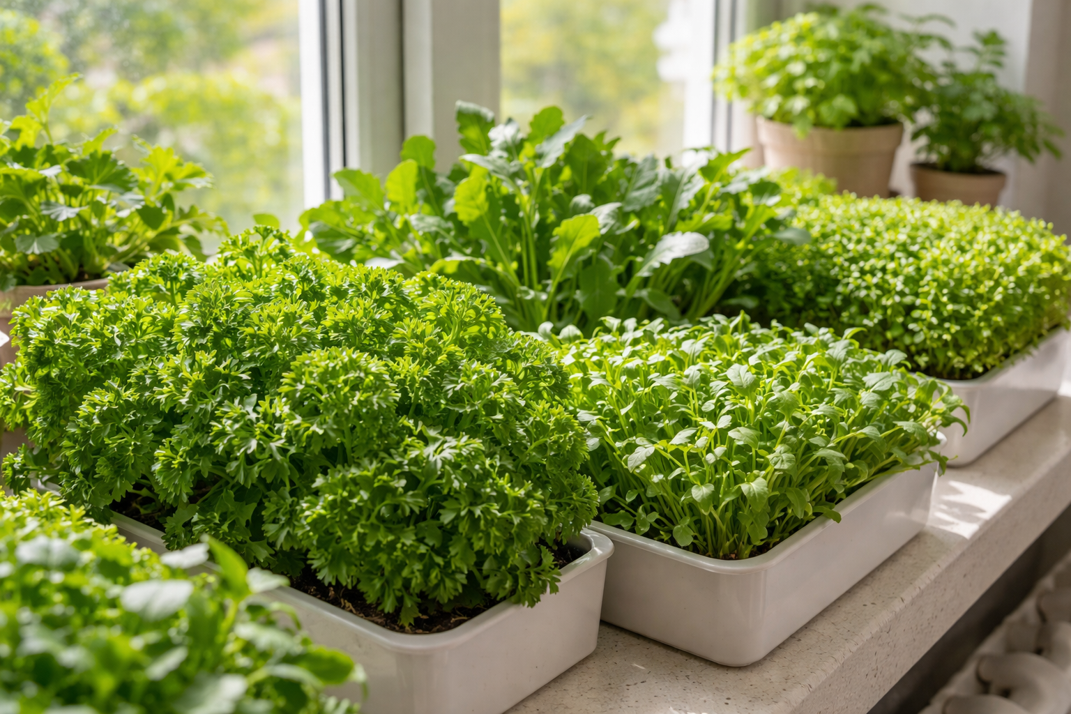 Een basisbalans van licht, de juiste grond en een gematigde luchtvochtigheid garandeert een stabiele oogst op absoluut elk raam. Regelmatige oefening maakt van dit proces al snel een aangename en zeer nuttige huishoudelijke routine.