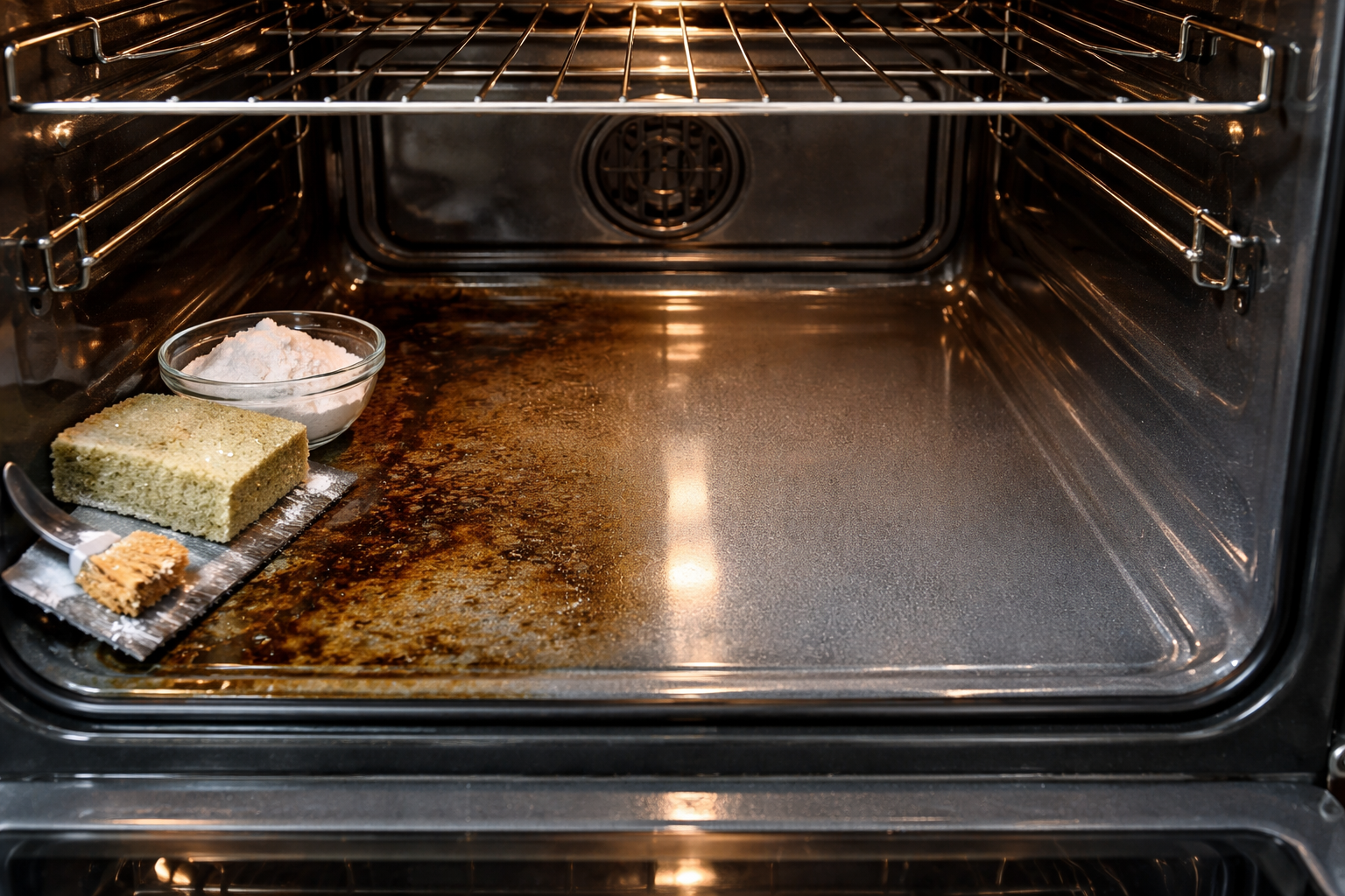 De juiste volgorde van stappen zorgt ervoor dat oven schoonmaken is eenvoudig en vereist geen harde metalen borstels.