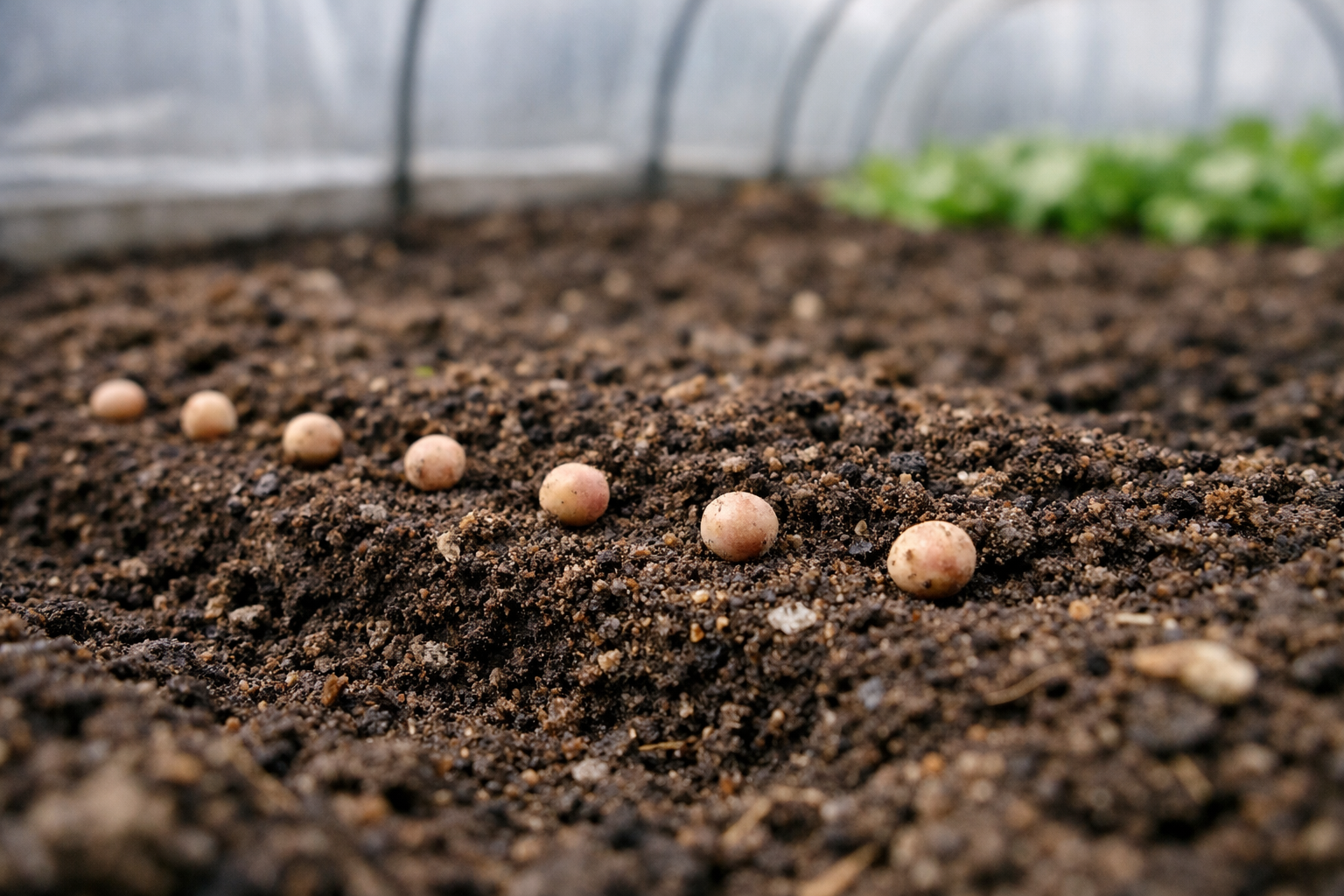 Verdicht de grond lichtjes met de palm van je hand na het planten voor een beter contact tussen zaad en grond.