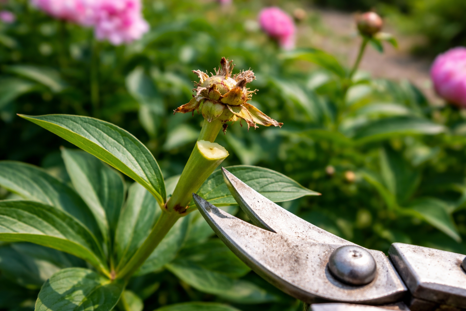 Het snoeien van pioenen direct nadat de bloemblaadjes zijn afgevallen is niet alleen een esthetische noodzaak. Door de zaaddozen aan de struik te laten zitten, wordt de plant gedwongen om enorme energie te besteden aan voortplanting in plaats van voedingsstoffen op te slaan in de wortelstok. Een goede verzorging tijdens deze periode zorgt ervoor dat bloemknoppen maximale voeding krijgen.