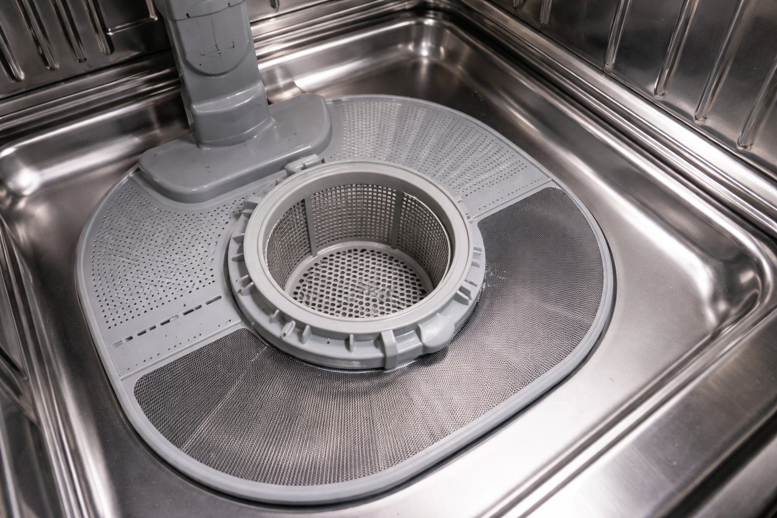 Afvoer filter vaatwasser helemaal onderin de kamer