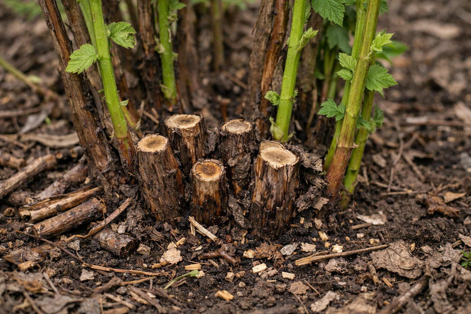 Kan ik stronken laten staan bij het snoeien van frambozen?