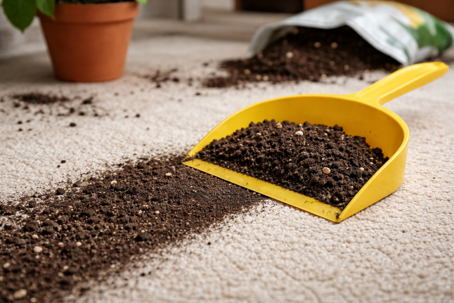 Het verpotten van een favoriete kamerplant eindigt vaak in een onaangename situatie wanneer donkere aarde een lichtgekleurd tapijt of schone laminaatvloer bedekt. Het is een bekend gezicht als je hand automatisch naar de stofzuiger of een vochtige doek grijpt, maar deze hulpmiddelen smeren het vuil alleen maar uit en drijven fijne deeltjes diep in de pool. Er is één ongelooflijk eenvoudige en veilige methode die de manier waarop je dit specifieke vuil schoonmaakt voor altijd zal veranderen.