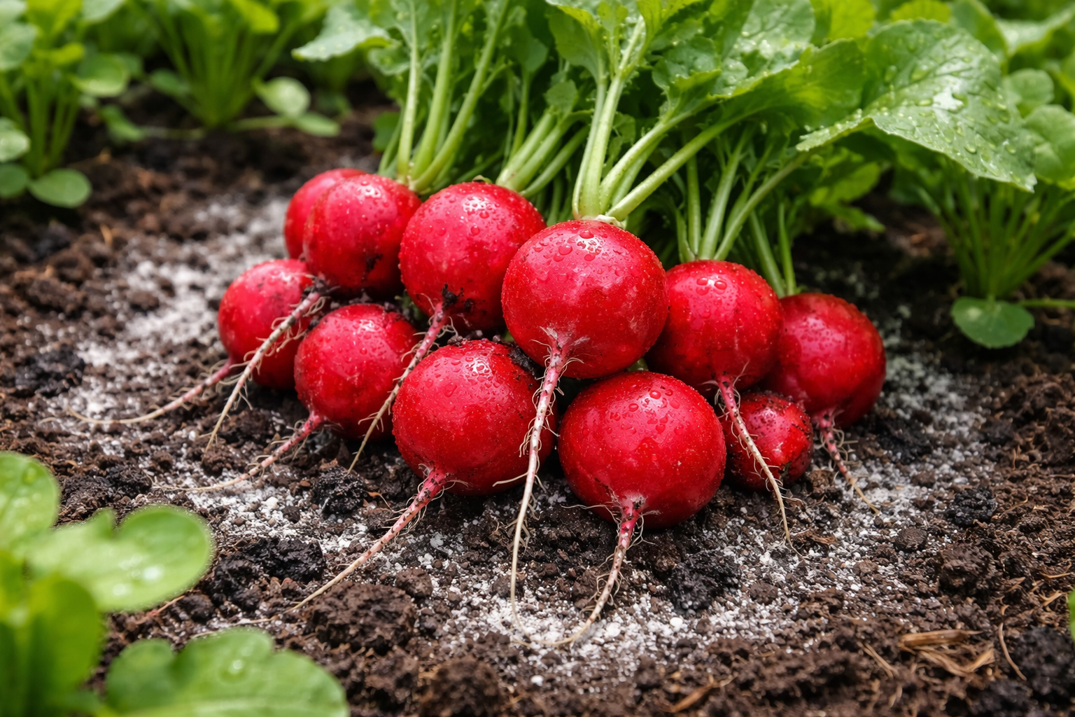 De juiste selectie van naburige gewassen speelt ook een rol. Radijs doet het goed naast sla en uien. Deze planten concurreren niet om voedingsstoffen en helpen bij het creëren van een gunstig microklimaat aan het bodemoppervlak.