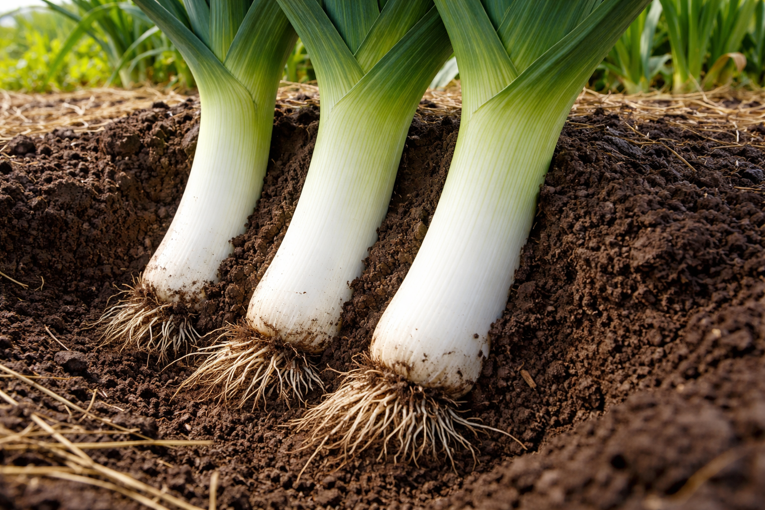 Vul de grond in de geul de hele zomer lang geleidelijk aan naarmate de stengel groeit, het is dit constante doordrenken dat verantwoordelijk is voor een goede wit wordende prei.