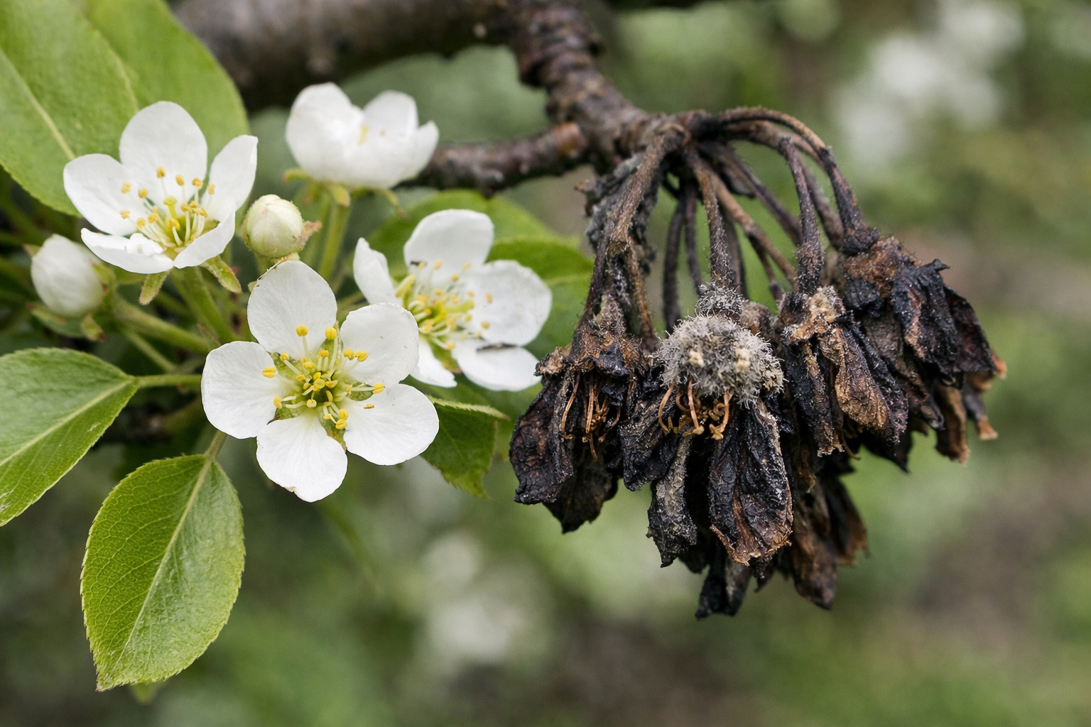 Dit is een klassiek symptoom van moniliose en vereist onmiddellijke verwijdering van aangetaste scheuten en behandeling met fungicide.