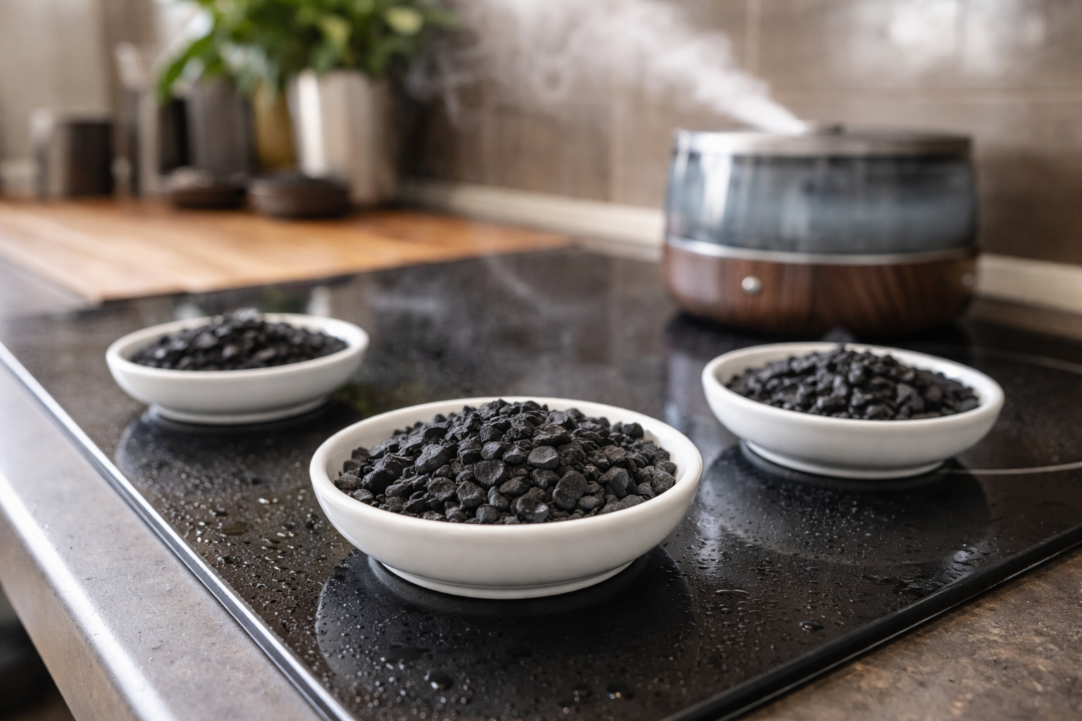 Gebruik actieve kooluitgespreid op schoteltjes.
