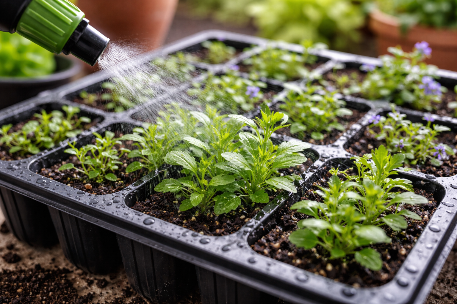 Mijn belangrijkste geheim voor het veilig bewateren van lobelia in de vroege stadia is het gebruik van een gewone medische spuit zonder naald voor het ter plekke toedienen van vocht strikt langs de binnenwand van de cassettecel.