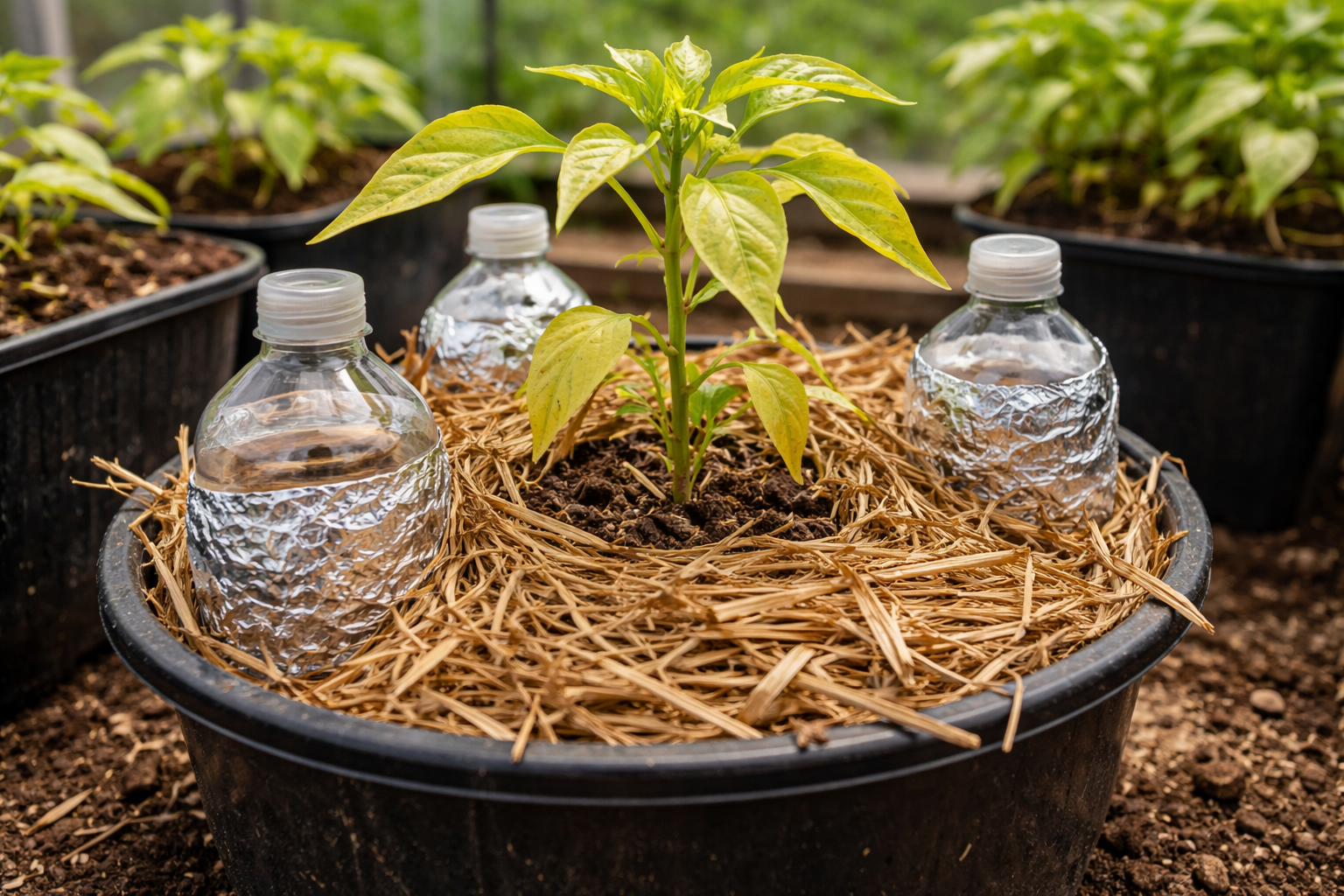Paprika’s komen oorspronkelijk uit warme klimaten. Wanneer de bodemtemperatuur daalt, stoppen hun wortels letterlijk met functioneren. De koude schok blokkeert volledig opname van fosfor en stikstofwat onmiddellijk wordt weerspiegeld in de conditie van het bovengrondse deel. Bladeren verliezen pigment, worden lichter van kleur en de vegetatie stopt volledig.