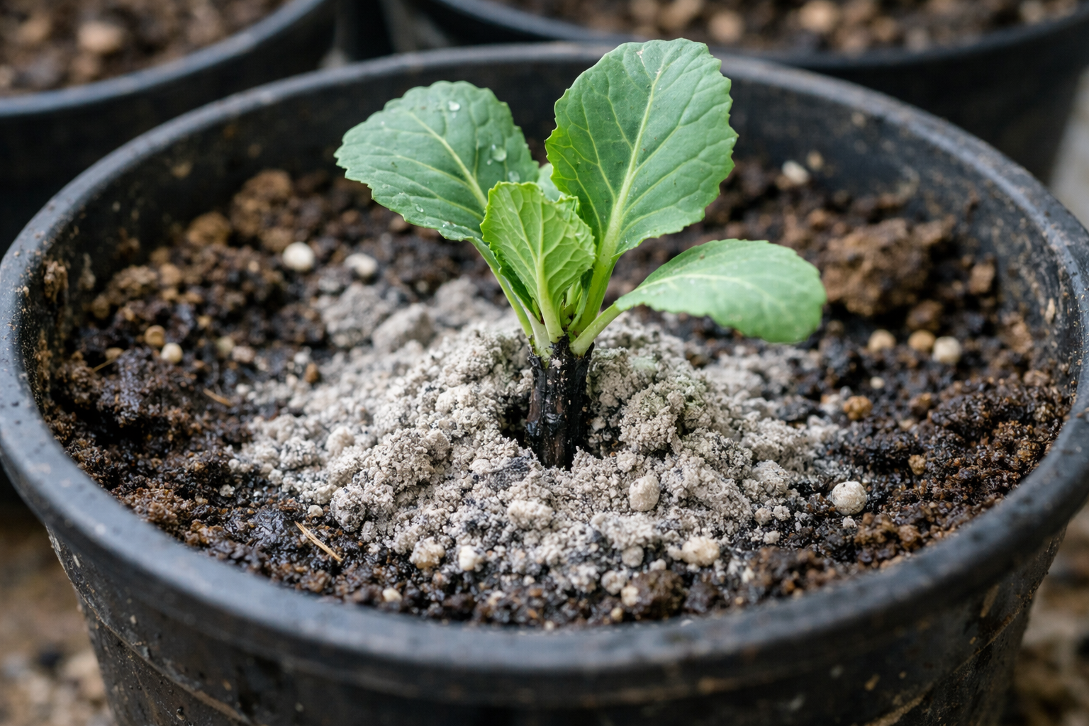 Mijn belangrijkste geheim voor een sterke kool: voeg altijd perliet of vermiculiet toe aan het grondmengsel en geef alleen water via een bakje om de bovenste laag grond droog te houden.