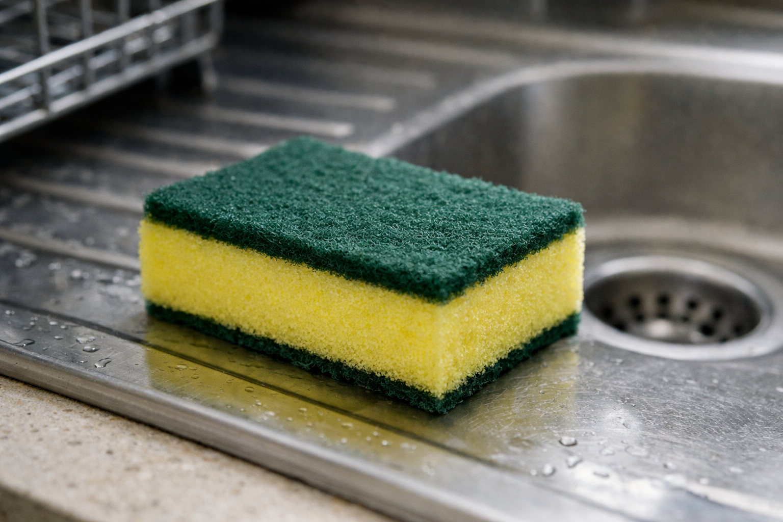 De toepassing van deze truc vereist een verandering van de gebruikelijke uitrusting. De klassieke schuimsponzen moeten helemaal worden afgeschaft, omdat hun diepe poreuze structuur het oppervlak veilig conserveert. microbioom in de keuken binnenin en beschermt het tegen alle schoonmaakmiddelen.