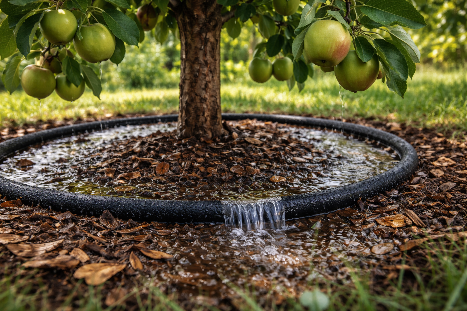 Het belangrijkste geheim: giet water niet onder de basis van de stam, maar strikt langs de omtrek van de kroonprojectie, waar actieve absorberende wortels geconcentreerd zijn.