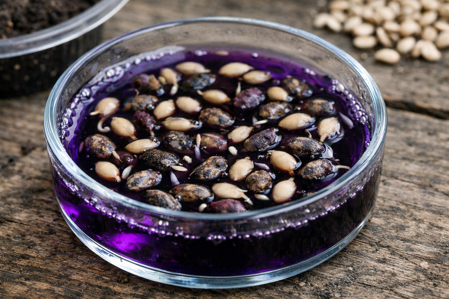 Veel moderne tuiniers zijn vergeten dat de gebruikelijke mangaan of kaliumpermanganaat – is een krachtig antisepticum. Wanneer dit poeder in contact komt met organisch materiaal, komt er actieve zuurstof vrij die schimmelsporen en gevaarlijke bacteriën letterlijk wegbrandt en je huis beschermt. zaailingen van zo’n vreselijke ziekte als zwartbenigheid.