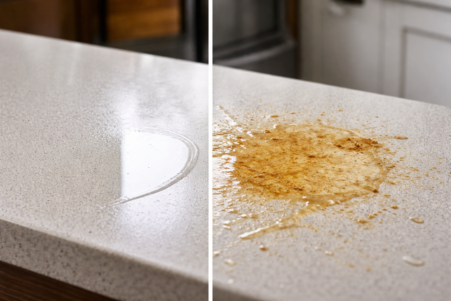 Het geheim van perfect schoon ligt niet in krachtige chemische formules, maar in de juiste timing. Wanneer een vloeibare substantie het werkblad of de vloer raakt, wordt er een onvermijdelijk fysiek proces in gang gezet. Eerst is er capillair effectwaardoor vocht actief de onzichtbare microporiën van het materiaal binnendringt.