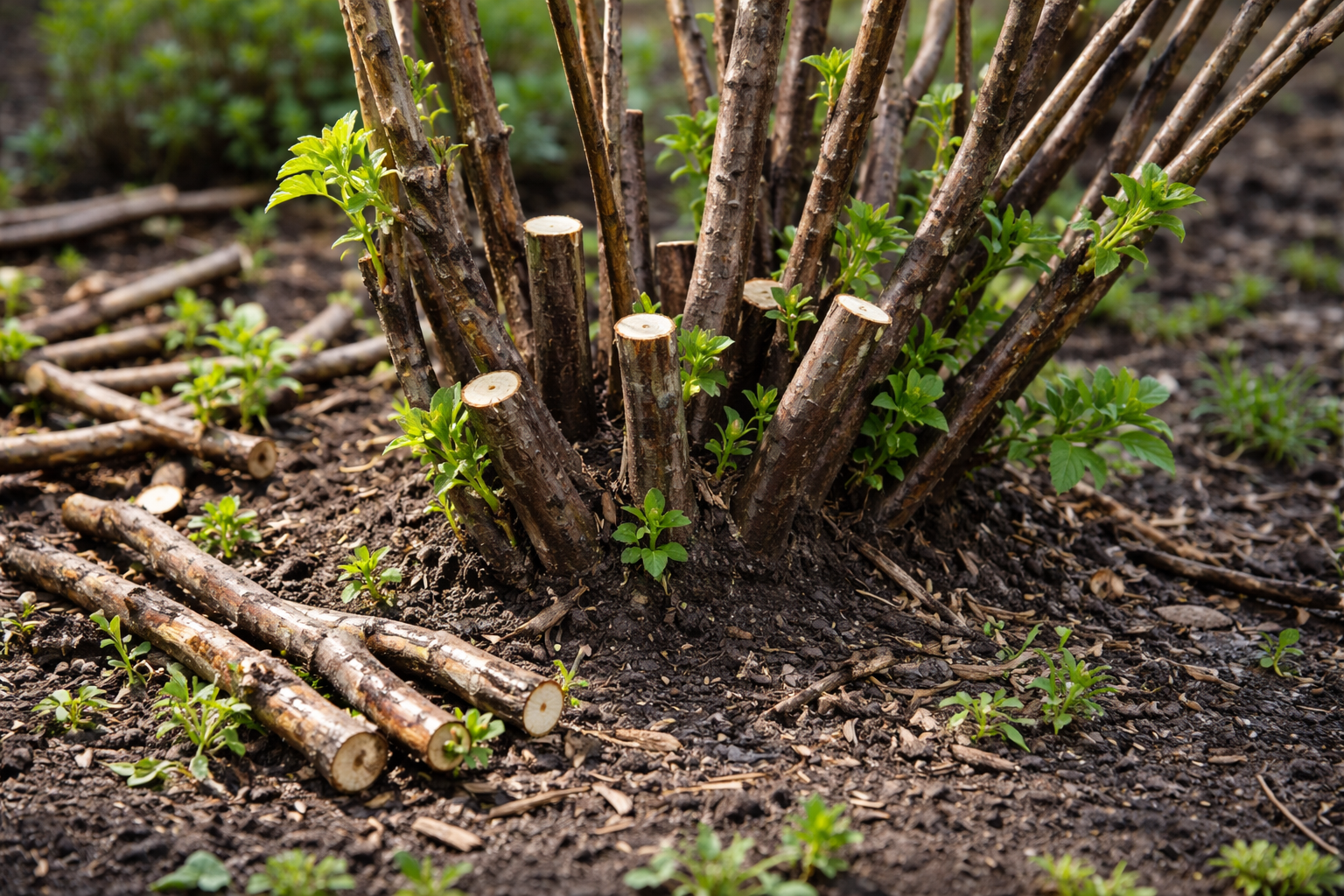 De ideale tijd is in het vroege voorjaar, vóór de knopzwelling, wanneer de actieve sapbeweging nog niet is begonnen.