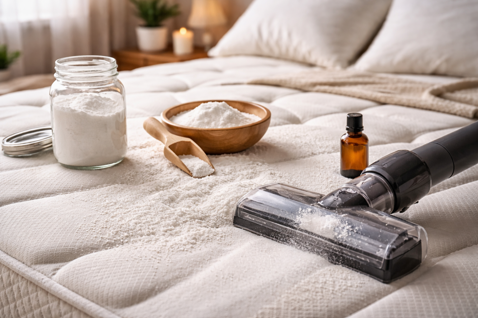 De geheime nuance ligt in de blootstelling: de soda moet minstens een paar uur op het oppervlak blijven liggen, zodat de actieve ingrediënten de tijd hebben om de bacteriële ketens binnenin de vezels volledig te vernietigen.