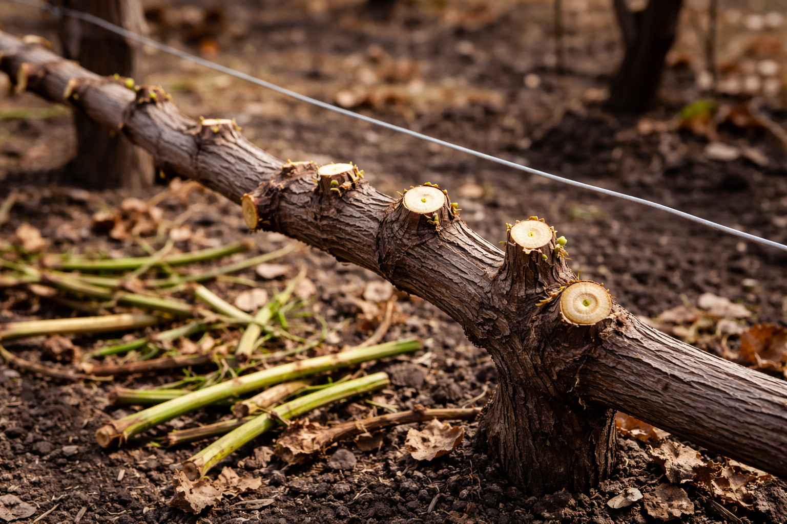 Als de knoppen zichtbaar zijn gaan zwellen en de wijnstok vochtig aanvoelt, is het ten strengste verboden om hem met de snoeischaar aan te raken.