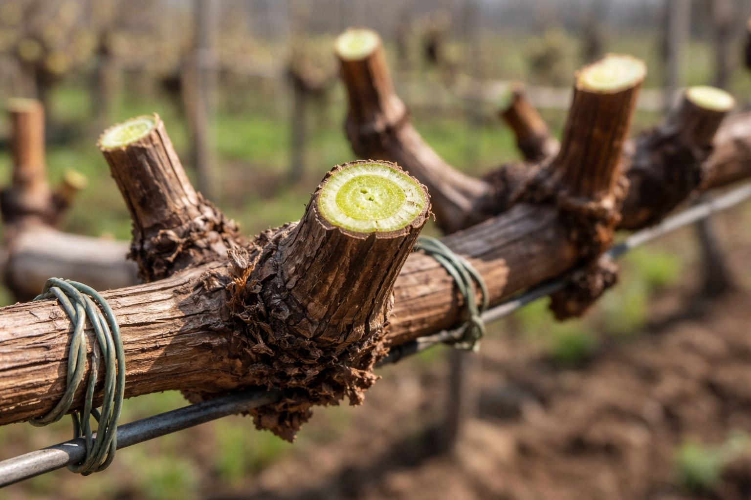 Spaar nooit oude uitgespreide takken, want druiven dragen uitsluitend vruchten op de scheuten van het huidige jaar, die gegroeid zijn van de sterke wijnstokken van vorig jaar.