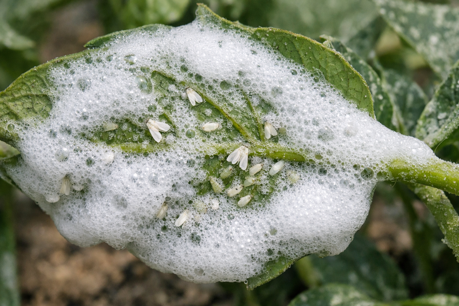 Breng het schuim met een spons rijkelijk aan op de aangetaste delen van de plant.