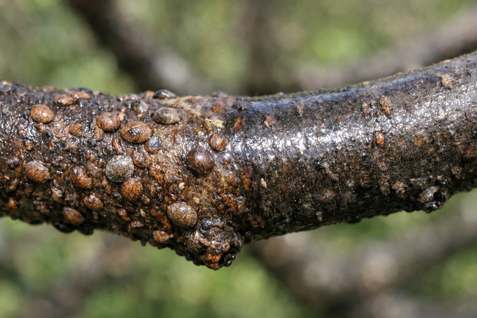 Als de natuur wakker wordt, wordt ze ook geactiveerd en schildworm. Dit ongedierte hecht zich vast aan de takken, drinkt de vitale sappen van de plant en laat een dichte laag achter. honingdauw. Als dit moment in het vroege voorjaar wordt gemist, is het bijna onmogelijk om het insect in de zomer te bestrijden vanwege de vorming van een sterk wasachtig schild.