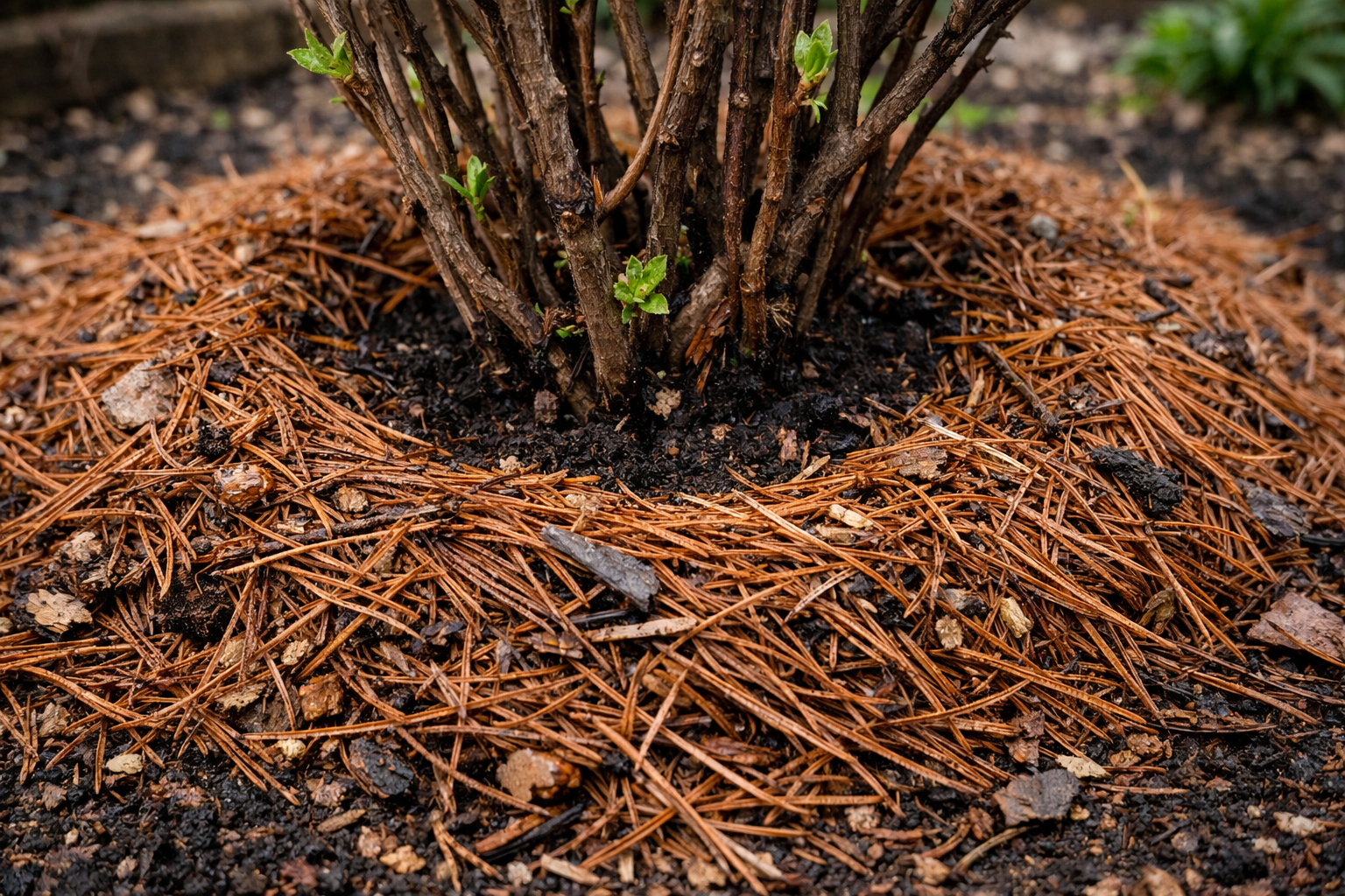 Wanneer de sneeuw naar beneden komt, heeft de grond speciale zorg nodig. Kale grond verliest snel vocht en wordt korstig. Goed mulchen lost dit probleem op door een ideaal microklimaat voor de wortels te creëren. Bosnaalden werken als een spons, absorberen water tijdens regenbuien en geven het langzaam weer af op droge dagen.