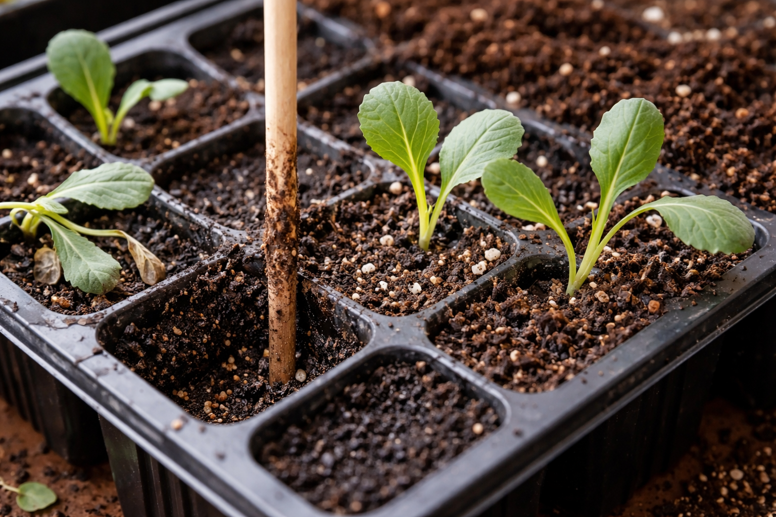 Wanneer bladeren hun turgor beginnen te verliezen en naar beneden gaan hangen, is de eerste instinctieve gedachte om de grond overvloedig water te geven. Maar in de overgrote meerderheid van de gevallen sterven zaailingen door de zwartbenigheid – een verraderlijke schimmelziekte die juist de basis van de stengel aantast als er te veel vocht is. De wortels stikken simpelweg in het natte substraat en stoppen met het pompen van voedingsstoffen naar het bovengrondse deel.