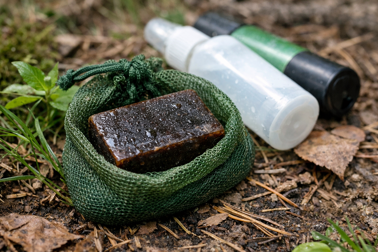 Doe geconcentreerde zeepkrullen in stoffen zakjes en berg ze op in je jaszakken.