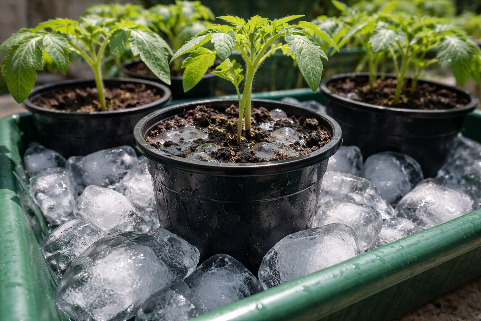 Wanneer tomatenzaailingen agressief ultraviolet licht, ligt het probleem niet alleen in de droge lucht. Oververhitting van de aardkluit in plastic bakken is cruciaal.