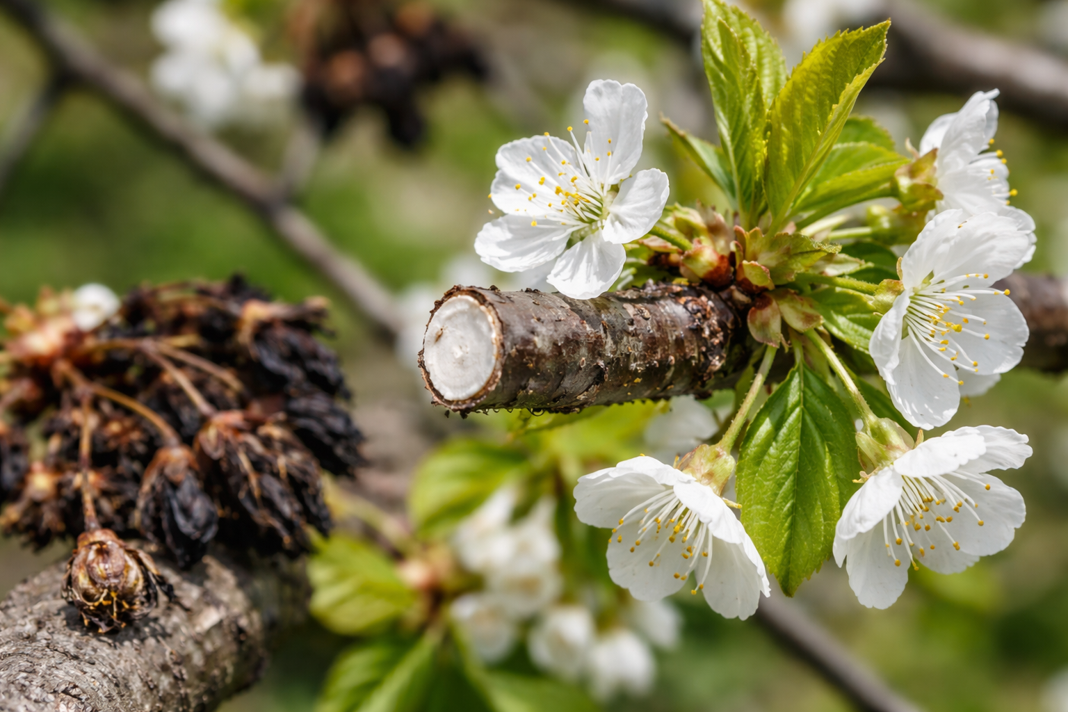 “Zonder tussenkomst van een tuinbouwer kan moniliasis een volwassen kersenboom volledig uitdrogen in twee tot drie seizoenen van actieve ziekteontwikkeling.”