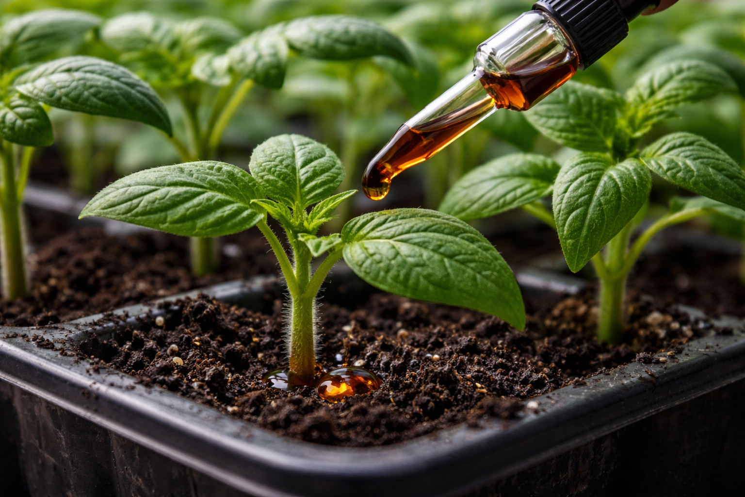 “De geheime nuance is dat jodiumbemesting alleen mag worden uitgevoerd op vochtige grond. Geef de zaailingen eerst water met gewoon schoon water en breng pas na een half uur de werkoplossing aan, om de tere zuighaartjes van de wortels niet te beschadigen”.
