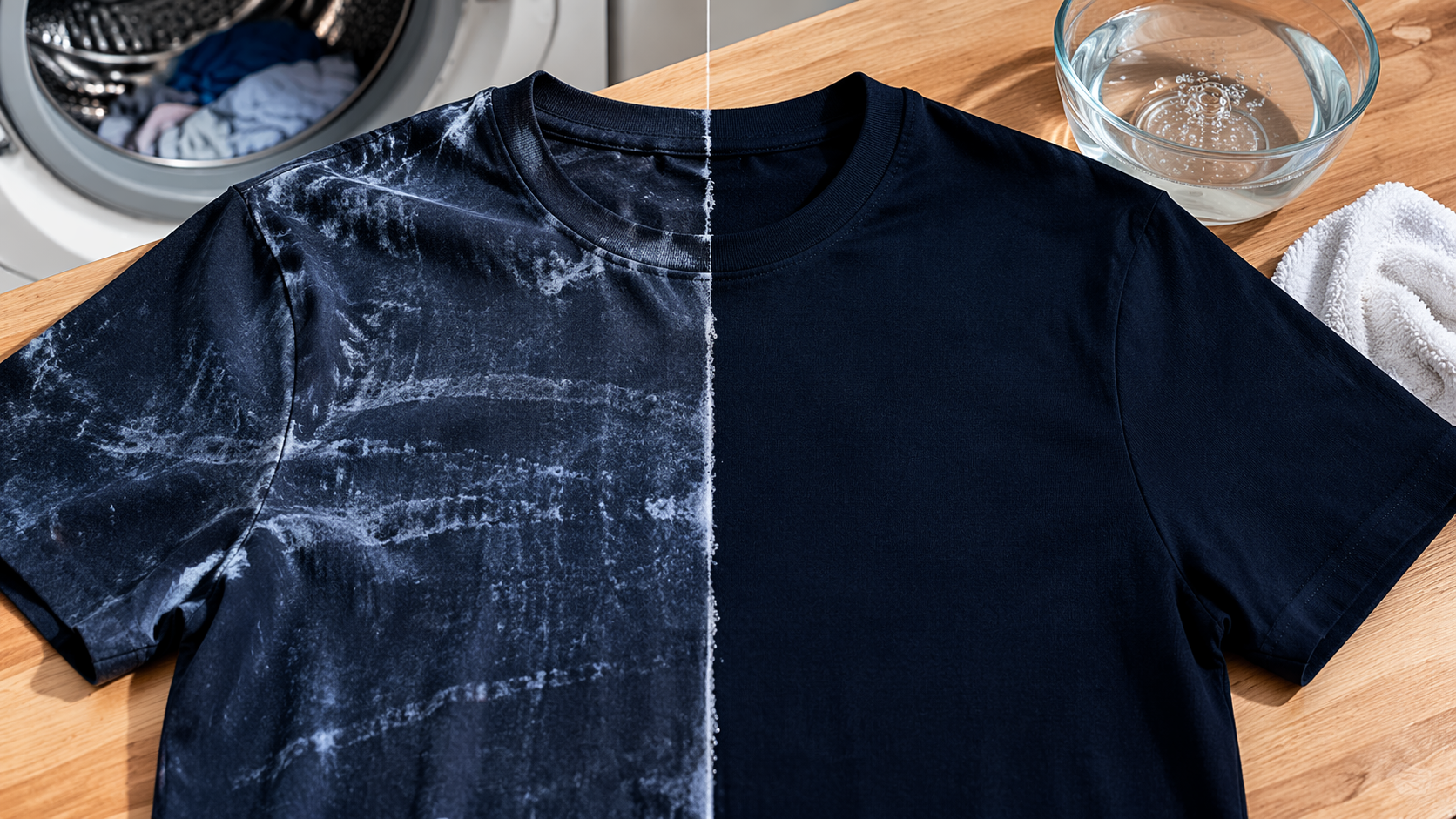 Het is een bekende situatie – je haalt je kleding uit de machine en je donkere stof zit onder de wittige strepen of plakkerige vlekken van wasgel. Deze vlekken van de wasmiddelen zelf zijn vervelender dan gewoon vuil, maar ik weet een gegarandeerde manier om je stof er weer perfect uit te laten zien zonder gedoe en tijdrovend opnieuw wassen.