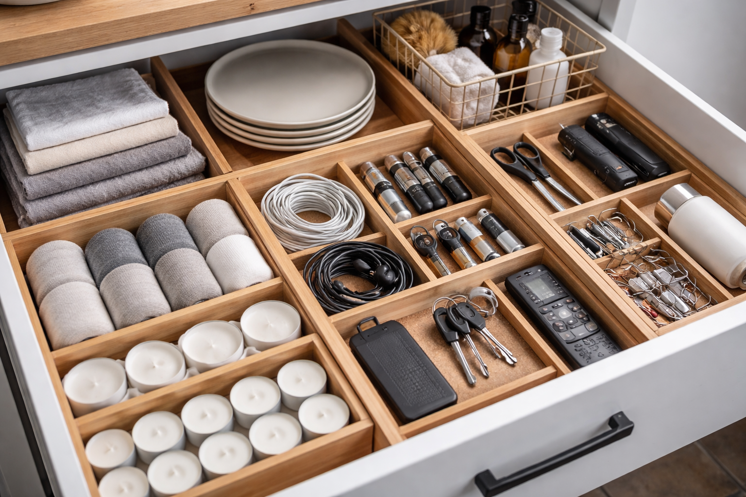 Zet een mooie rieten mand in elke kamer waarin je snel alle kleine spullen kunt dumpen voor het slapengaan.