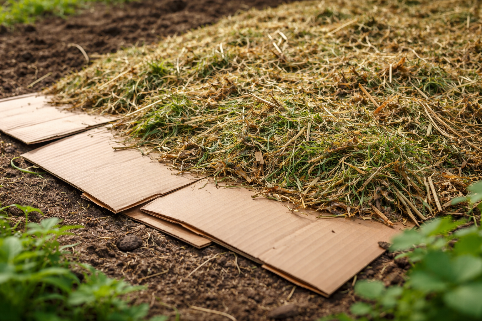 Gebruik gemaaid gras, stro of houtsnippers als toplaag.