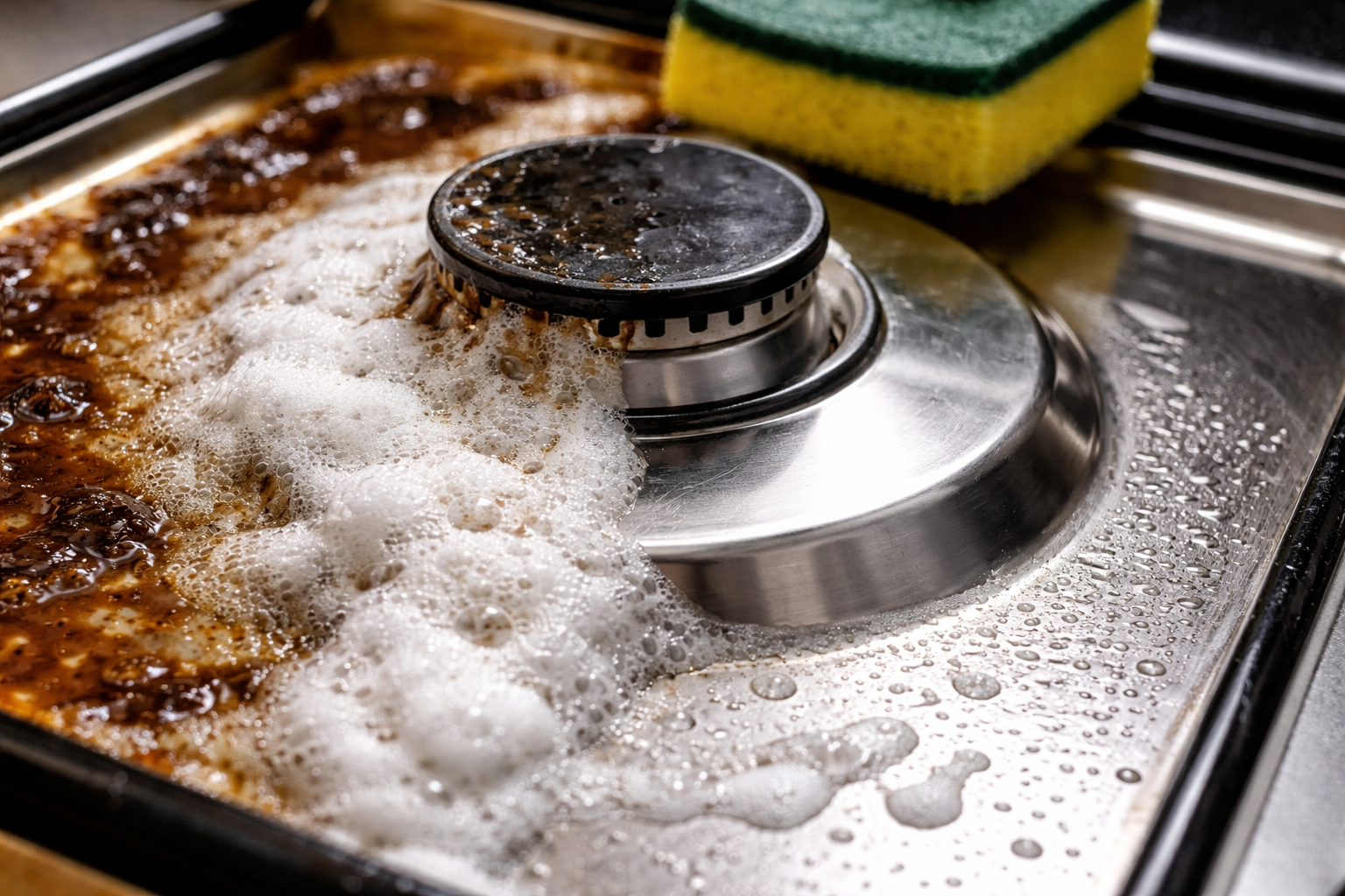 Verwijder dicht roet van bakplaten en ovenwanden met een dikke pasta.