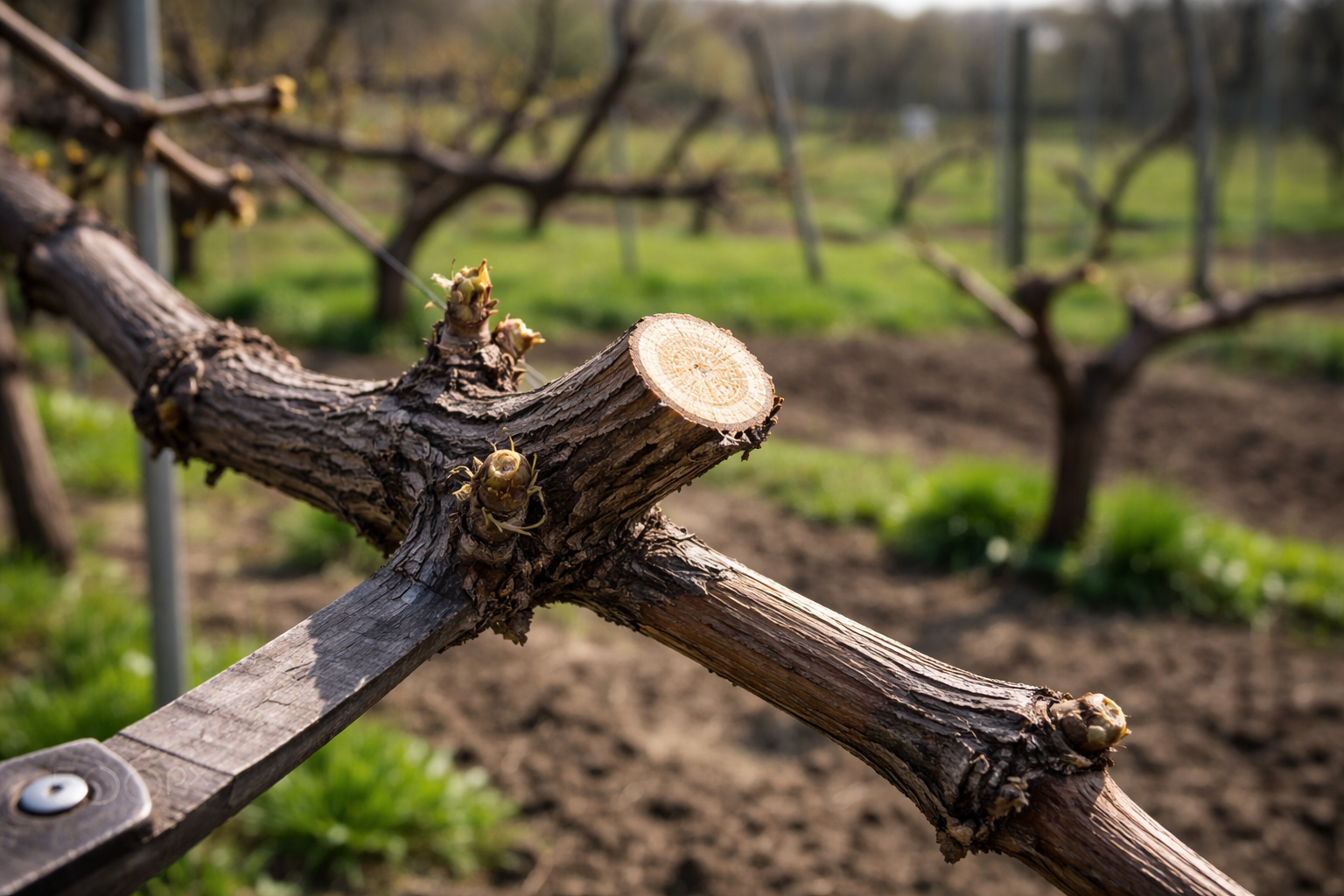 De beste tijd is voordat de wijnstokken beginnen te wenen en de knoppen zichtbaar opzwellen.