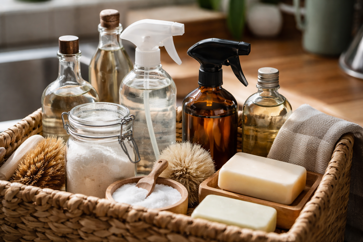 Je hoeft niet tientallen verschillende flessen te kopen voor elke kamer. Minimalistisch schoonmaken vermindert de chemische belasting van je lichaam.