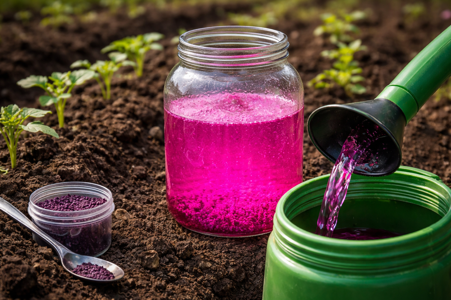 Veel mensen maken de fout om kristallen rechtstreeks in de gieter te gieten. Dit is een directe route naar chemische brandwonden op tere wortels.