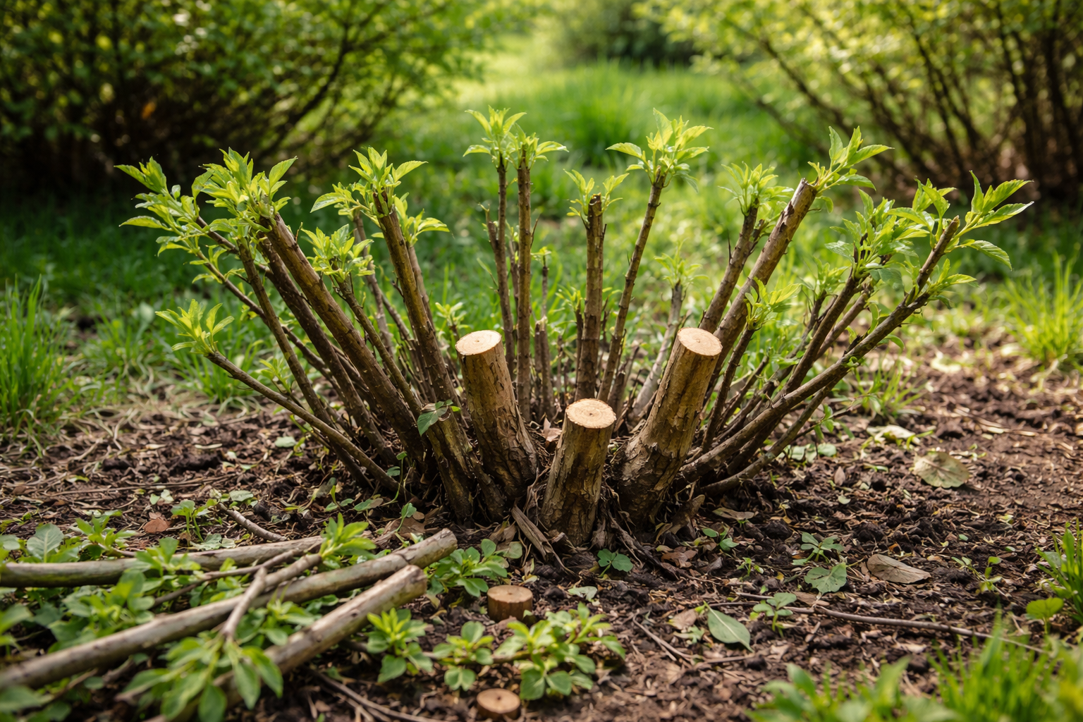 Het belangrijkste geheim ligt in het volledig verwijderen van oude skeletachtige takken helemaal aan de basis, waardoor de struik gedwongen wordt om krachtige jonge vervangende scheuten uit de wortelhals te schieten.