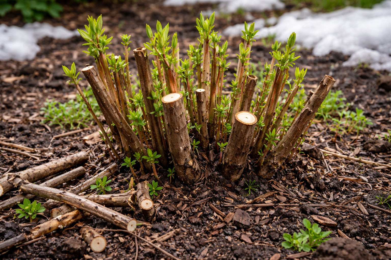 Het werk wordt uitgevoerd in de vroegste lente voordat de knoppen opengaan, zodra de belangrijkste sneeuw is gesmolten.