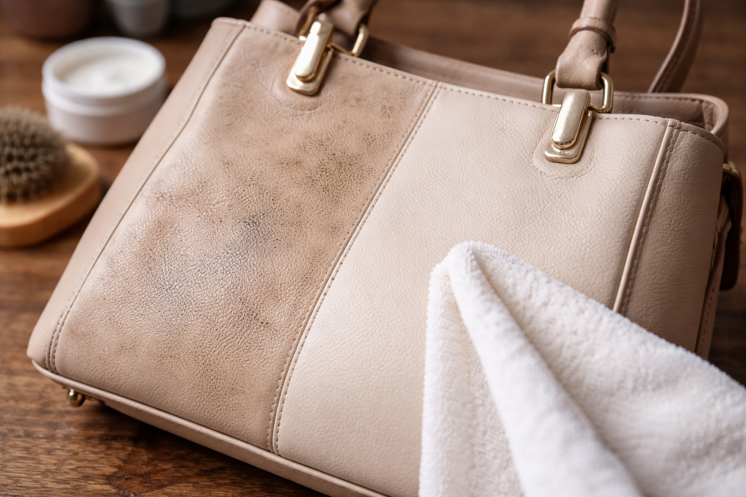 Natuurlijk leer en kwaliteitsvervangers verdragen niet veel vocht, dus het proces moet zo droog en delicaat mogelijk zijn. Conventionele vochtige doekjes laten vaak witachtige strepen achter die moeilijk te verwijderen zijn.