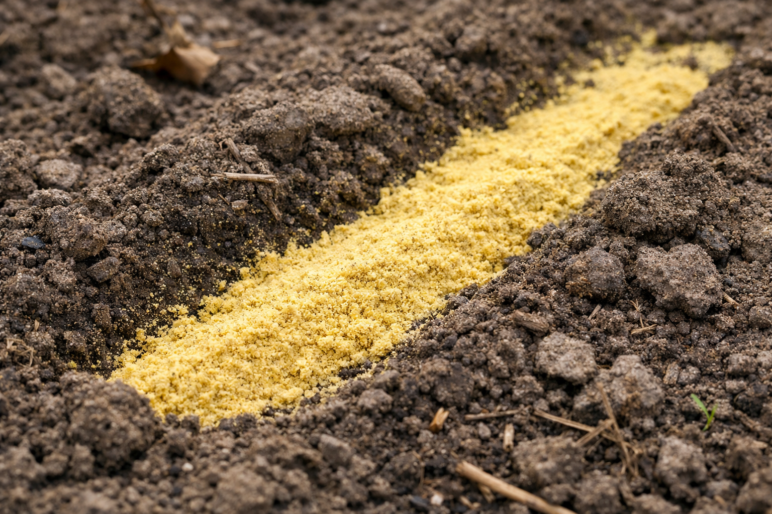 Mosterdpoeder wordt direct in de gaten gegoten bij het planten.