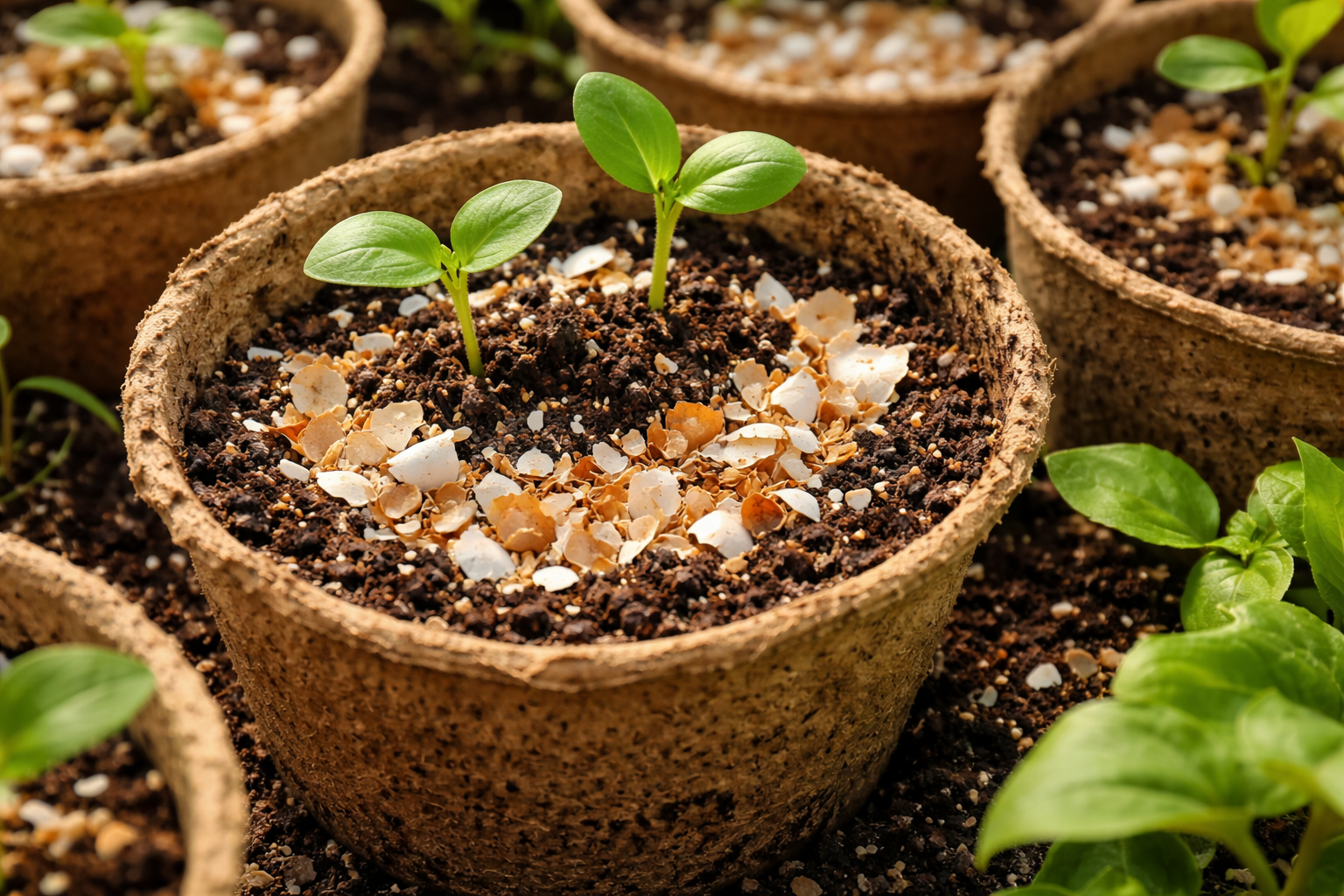Voor tomaten- en peperzaailingen leg ik een laagje op de bodem van elk kopje. Dit is vooral belangrijk als je bakjes zonder drainagegaten gebruikt. Calciumin de schelpen versterkt de celwanden van de planten, waardoor ze beter bestand zijn tegen temperatuurschommelingen als ze buiten worden geplant.