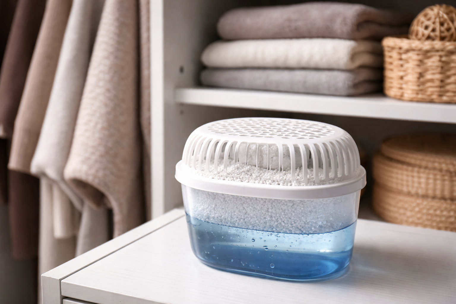 Natuurlijke en chemische sorbents zijn geweldig voor kleine kamers, kasten of garderobes. Ze werken autonoom en hebben geen stroomvoorziening nodig. De meest betaalbare is steenzoutdat uitstekend overtollig water uit de atmosfeer absorbeert. Ook uitstekende resultaten zijn aangetoond door silicageldie vaak te vinden is in nieuwe schoenendozen.