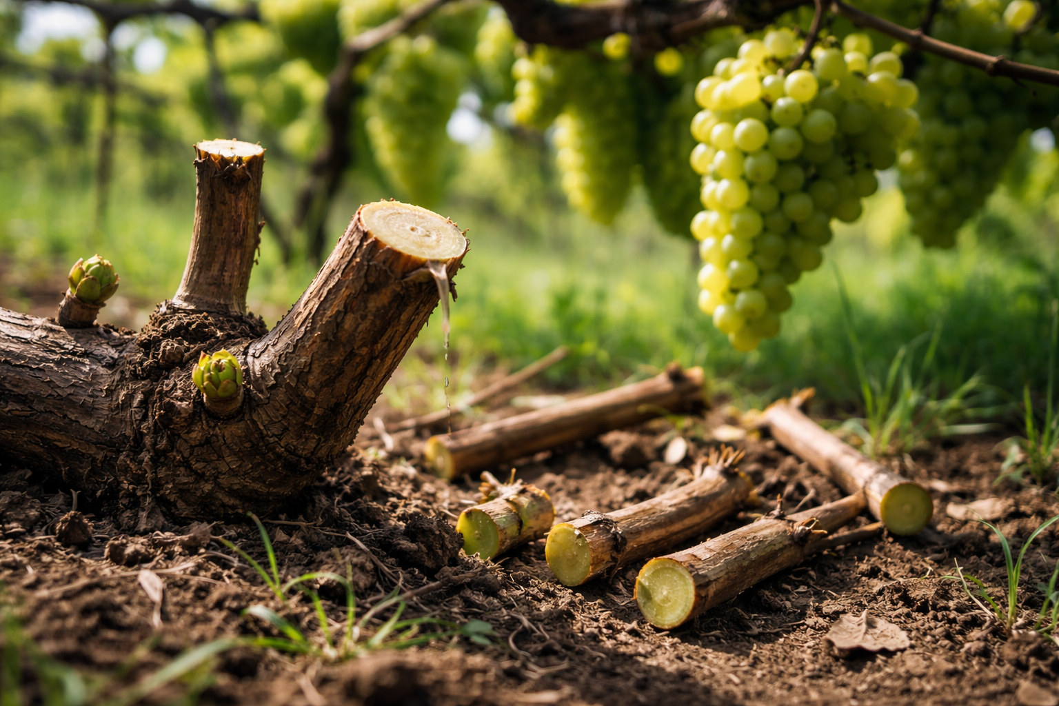 Druiven hebben een unieke eigenschap om zichzelf te herstellen, dus extra behandeling van sneden is niet nodig.