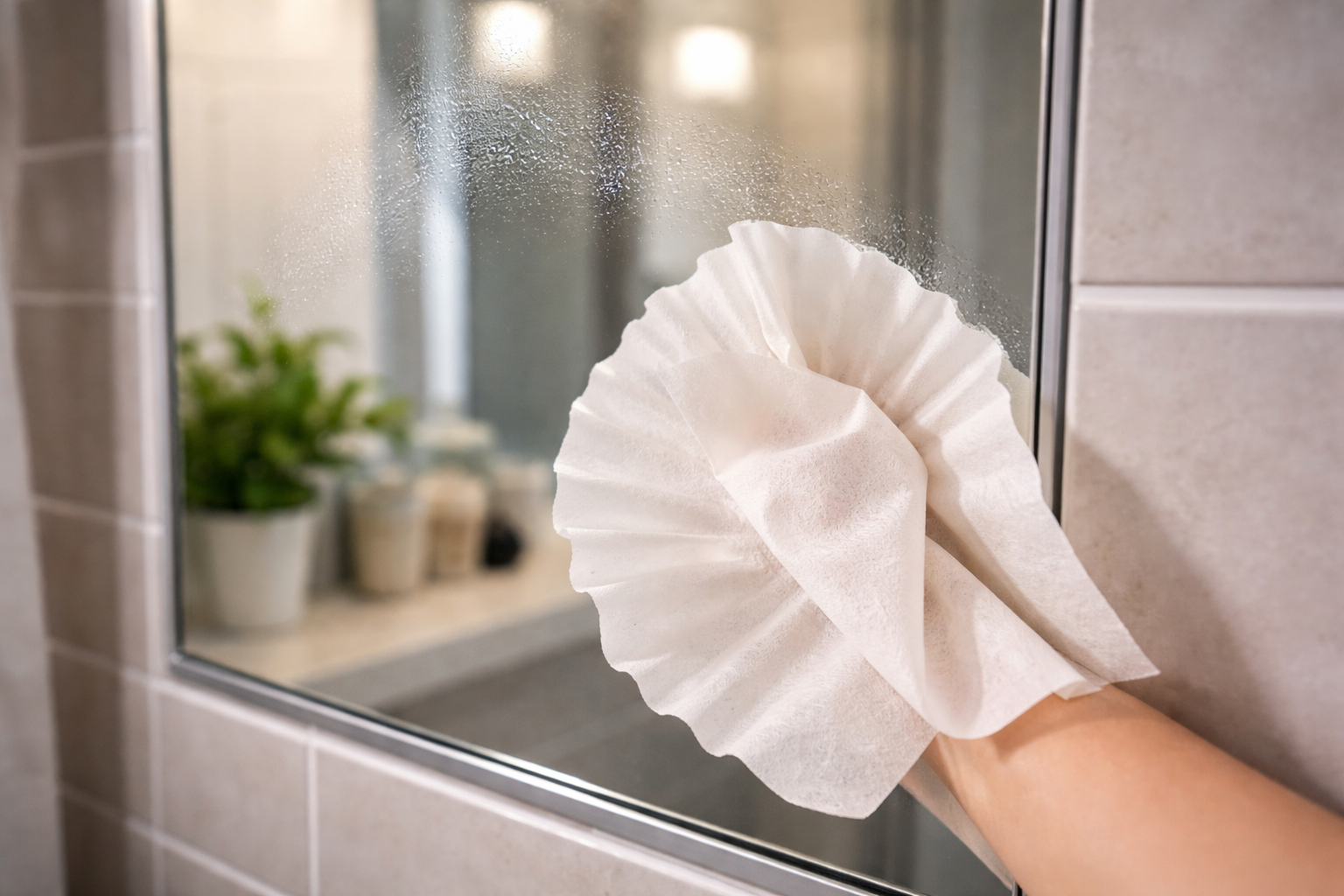 Bij het schoonmaken van ramen laten conventionele doeken vaak fijne pluisjes achter die het hele resultaat bederven. De papieren achterkant werkt anders en fungeert als een delicaat polijstmateriaal. Het absorbeert overtollig vocht en verwijdert strepen.