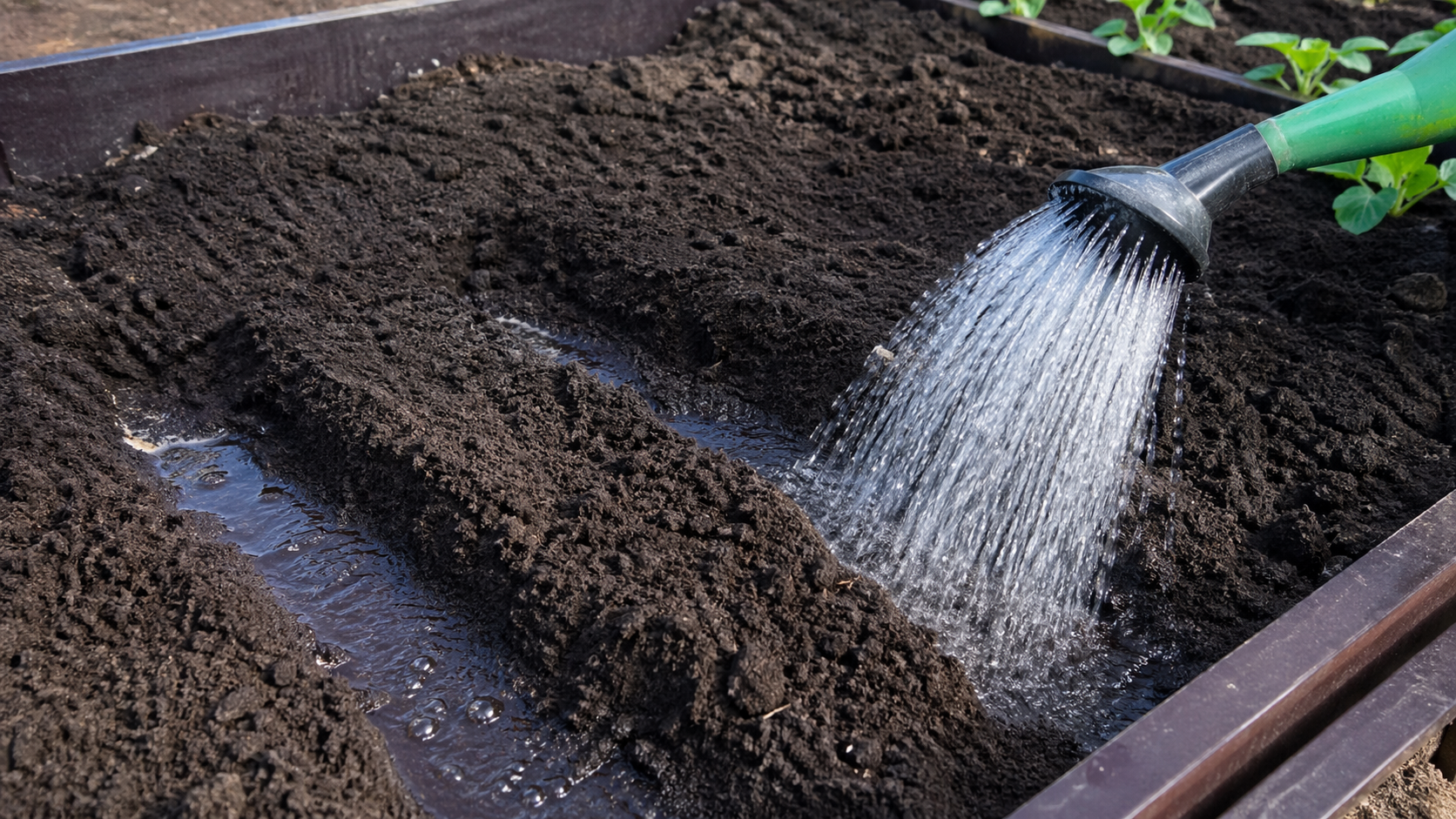 De meest effectieve manier om zaden wakker te maken is door de heet water. Voordat ik ga zaaien, overgiet ik de voren met water met een temperatuur van ca. 50 graden. Dit verwarmt niet alleen de diepe lagen van de grond, maar wast ook de essentiële oliën van de zaden (vooral dille en peterselie) die de kieming remmen.